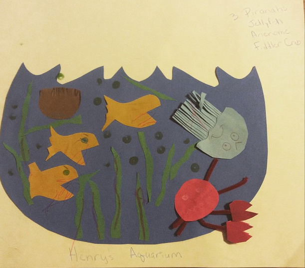 Make a goldfish bowl: Start by pasting goldfish to fishbowl shaped paper and use water colors to paint the water in the fish bowl.