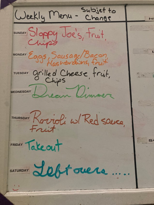 I’ve gotten a good inventory of the pantry, freezer, and fridge (I try to update it after every shopping trip), so I plan meals and use up what we’ve got with little waste.
