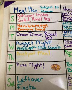 Dinner: We’ve got a pretty good schedule down for dinners. We have nuggets (vegetarian for the boy child, chicken for the rest) on the nights that we have respite. It’s quick to prepare and clean up, and I can serve it on our cafeteria trays with other fingers foods (we have trays like these) like cut-up fruit, crackers, and cheese. I have been posting our meal plans on Instagram too- As well as pics of stuff we are doing to keep busy.