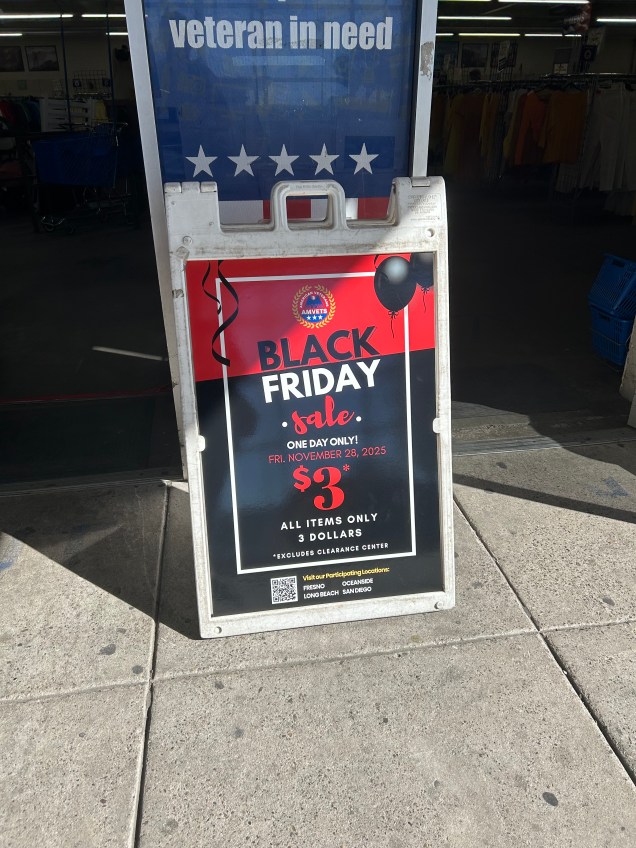 Amvets: All items are $3.00, excluding clearance items. This deal is valid all day on November 28, 2025, at all AmVets locations. Locations can be found here.