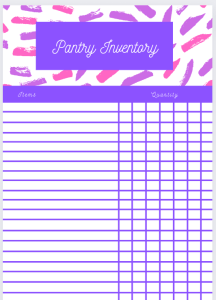 Start by making a list of what you already have at home. I use inventory sheets that I made on Canva. I have one for the Pantry, one for the fridge, and one for the freezer. They live in plastic page protectors, and I update them when I am cooking (or afterward). It makes seeing what we’ve got on hand a breeze.