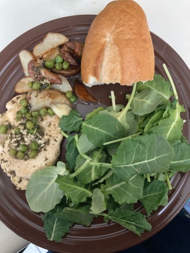 I love Dream Dinners because it’s a great way to save time and still serve the fam a tasty healthy meal. We order 12 small meals each month and serve 2-3 a week. Between Dream Dinners, and our CSA box, our grocery budget is under control, and we aren’t eating out multiple times per week. Because we’ve been home 24/7 for the past year, our grocery budget has gone up, but we are not eating out often. Whenever we get the urge to eat out, I grab a Dream Dinner meal from the freezer, and in less than an hour, we are eating gooood.