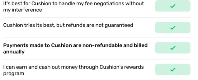 Basically, you don’t get the money credited back to you, you earn “rewards” through Cushion’s program. A quick internet search leads me to believe that it’s mostly Amazon Gift Cards, which as much as I love Amazon Gift Cards is not what I want. I want cold hard cash in my hot little paws.