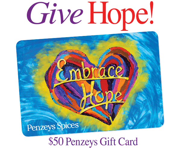Limit TEN Penzeys $50 Heal the World Gift Cards for $35. Cannot be used on date of purchase. Cannot be used to purchase other gift cards. Not applicable to prior sales, not valid with other offers. Not for resale. While supplies last. Offer ends midnight Monday, January 6, 2025.