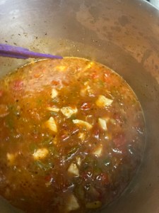 Here is my version, but instead of using chicken, I substituted Cannellini beans. Why? Because I had cannellini beans, and I didn’t have any chicken.