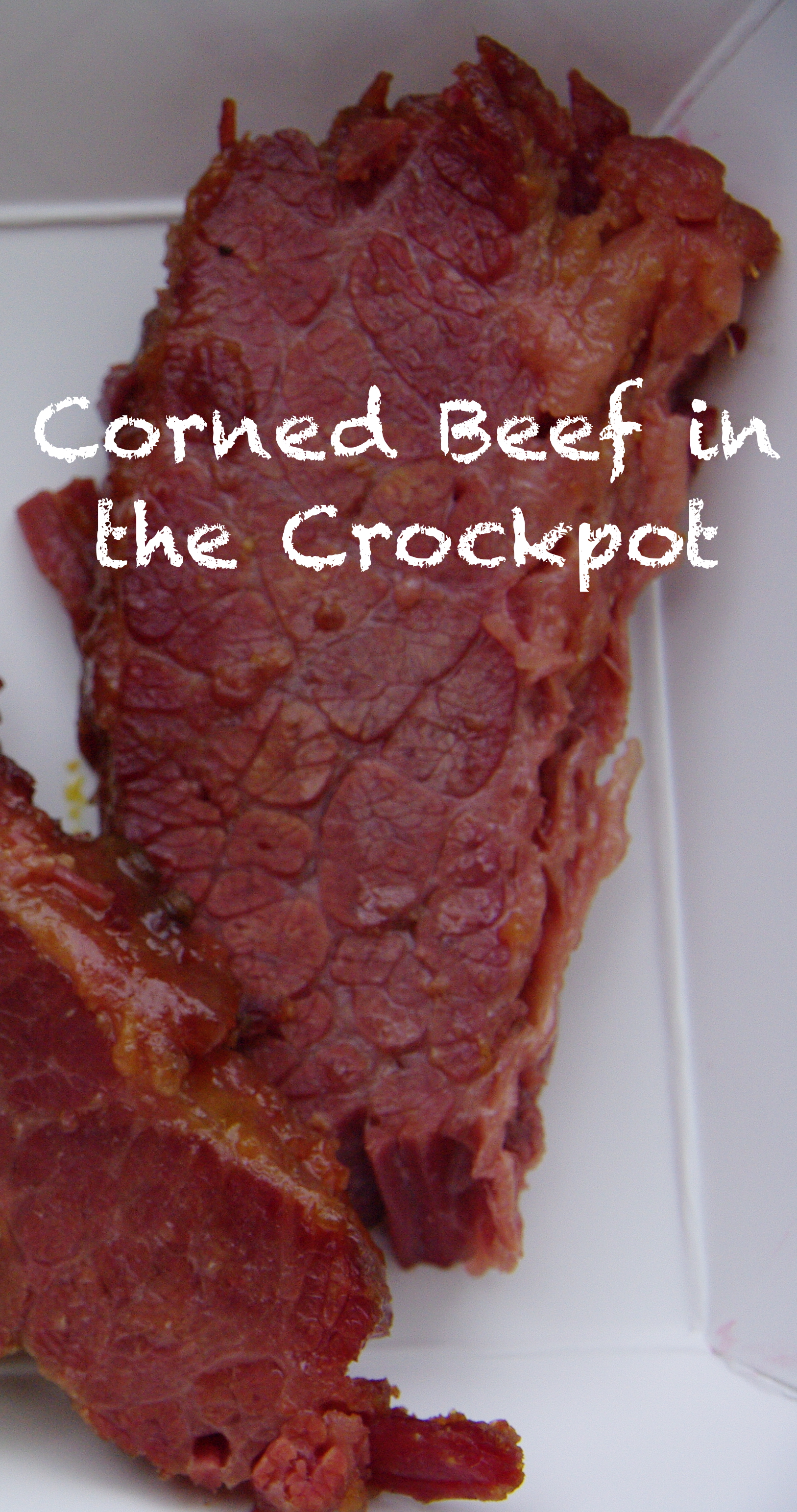 I know a lot of people don’t like corned beef because every time they’ve had it, it was chewy or tough. I’ll share a secret with you: bake it, don’t boil it! When you bake the meat at a low temperature in a crock pot for hours and hours, the heat breaks up the collagen and fat, leaving you with a tender, falling apart yummy corned beef, not the rubbery mess you got at the pub last year with your annual Guinness.